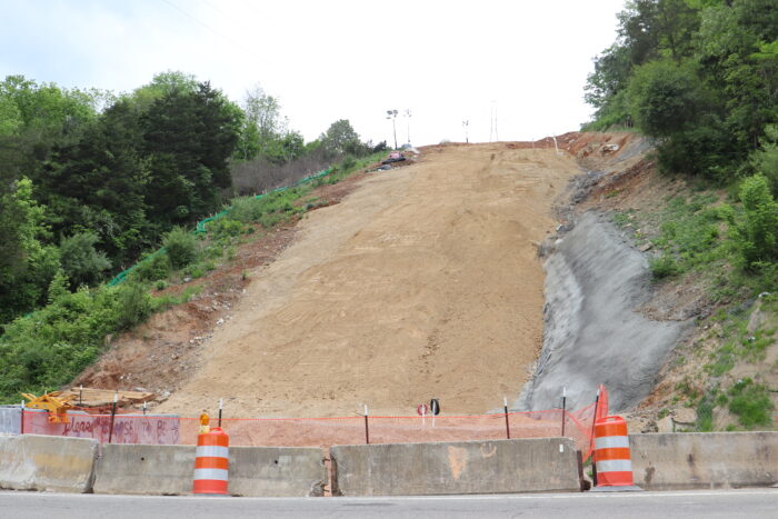 “This project was proposed 10 years ago. They’re using restoration stuff that’s appropriate for a highway, which never goes back to the original contours of the land. It’s kind of level and straight,” she said. “So that stuff probably works great for restoring a highway. But it does not work on steep slopes. You have to get the water off the right of way. You cannot keep the water on there and keep the soil, too.”