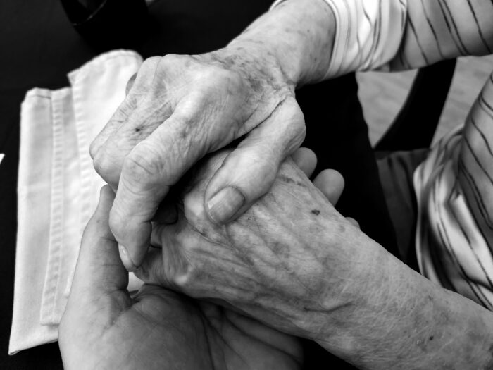 News Director Eric Douglas holds the hands of his mother, Lois, who has been dealing with dementia for the past few years. Eric hopes this series will help others like him who have to navigate caregiving and the decisions that come with it.Eric Douglas/West Virginia Public Broadcasting