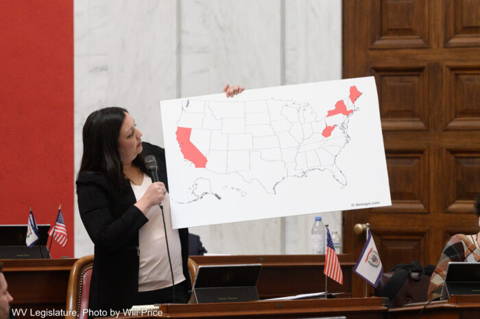 Using an annotated map to make her point on the Senate floor Friday, Sen. Laura Chapman, R-Ohio, said the law will bring West Virginia in line with other surrounding states.