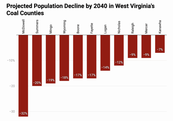 The population in Appalachia’s coal-producing counties has declined since the boom of the 1950s. As the coal industry mechanized and shrunk, jobs went away, and young people did, too. Now, a series of population estimates shows things might get even worse.