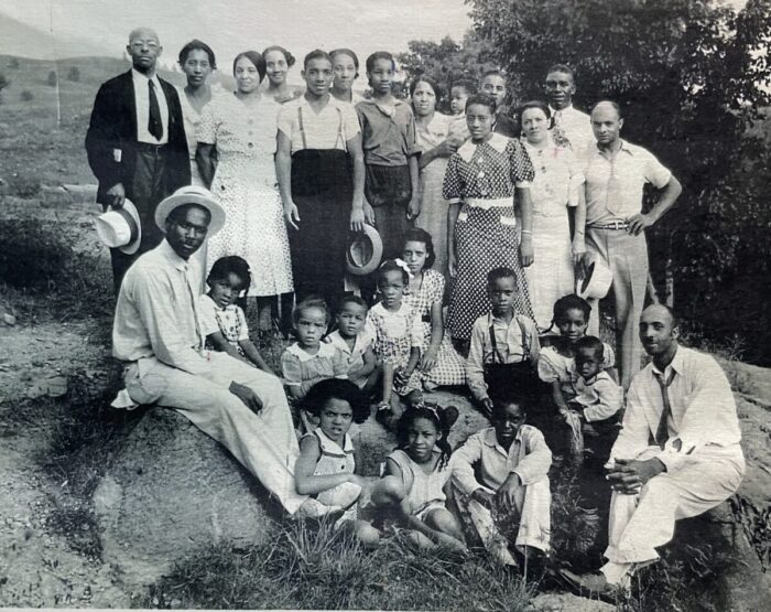 Rev. George M. Dickerson, standing top left, at a family reunion in 1936 with most of his 16 children and his grandchildren. He formed a neighborhood children’s drama group called the “Rock Alecks” and taught children how to sing shape notes. Many of his poems were about family life.Courtesy of Jeanette Wilson